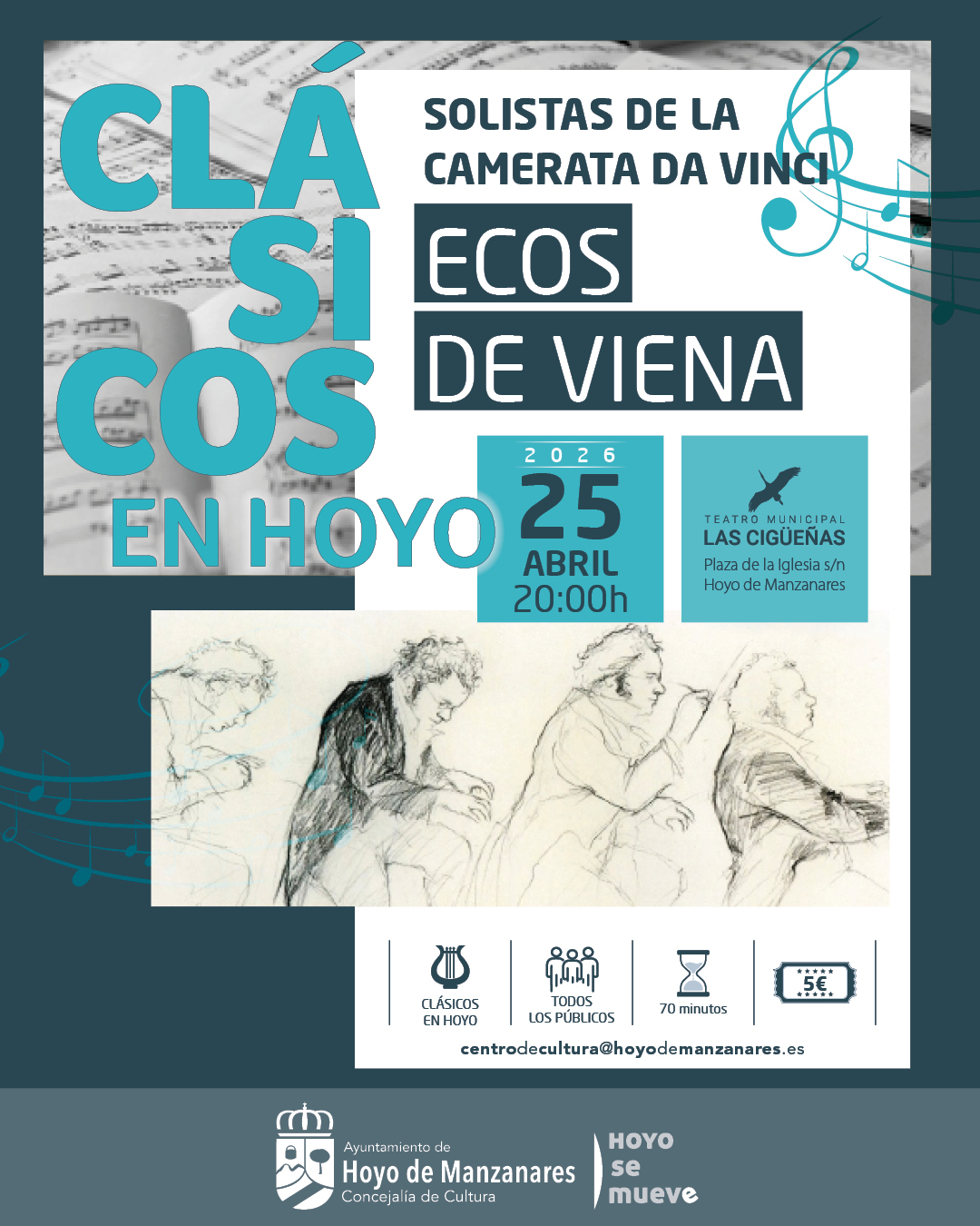 Este sábado 25 de abril, Clásicos en Hoyo presenta Ecos de Viena, una invitación a adentrarse en el universo sonoro de Franz Schubert a través de una de sus obras más cautivadoras: el Octeto en fa mayor, D. 803.